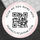 Elegantes, rundes QR-Codeletikett mit kreisförmigem Text und einem druckbaren, hellrosa Satin-Farbverlauf.