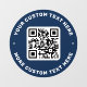 QR-Code und Text oben und unten dunkelblauer Kreis Fensteraufkleber