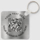 Einfaches Schlüsselanhänger für Ihr Unternehmen oder Ihre Organisation mit einem silberfarbenen Imitat in metallischem Hintergrund. Fügen Sie Ihren QR-Code oder Ihr Logo und zwei Zeilen mit individuellem Text hinzu, z. B. Ihren Firmennamen, Slogan, vielen Dank oder verlass leer.