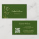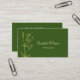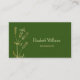 Berufliche Visitenkarte mit handgezeichneter Wildblume in Goldlinie mit Texten in serifenlosen Schriftart auf grünem Hintergrund. Modernes, minimalistisches Design mit einer Vorlage für Ihren QR-Code auf der Rückseite.
