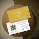 Minimalistische Yoga Instructor Visitenkarte, mit weißem om Symbol auf goldenem Hintergrund. Mit weißen und schwarzen Buchstaben können Sie Ihre eigenen Informationen hinzufügen. Sie fügen auch Ihre Web-Adresse in das QR-Codefeld ein.Ideal für die Werbung Ihres Yoga-Studios oder Fitness-Geschäfts.