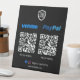 Ein einfacher, benutzerdefinierter schwarzer Geschäftsscan, der von Venmo oder Paypal QR-Code-Podestal-Schild in einem modernen minimalistischen Stil zu bezahlen.