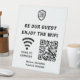Ein einfacher, benutzerdefinierter weißer Geschäftsscan zum Connect Wifi QR-Code-Podest-Schild in einem modernen minimalistischen Stil.
