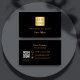 Ein klassischer schwarzer Hintergrund. Personalisieren und fügen Sie Ihr Firmenlogo, Text auf der Vorderseite und Name/Unterschrift. Zurück: Vorlagen für Ihren Namen, Titel, Telefonnummer, E-Mail und Website-Adresse, QR-Code.