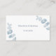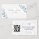 Personalisieren und fügen Sie Ihre Namen, Hochzeitwebsite url für Ihre eigenen QR-Code und Text. Ein weißer Hintergrund, blauer Text. Dekoriert mit staubigen blauen Eukalyptus-Sprigs, Stiele.