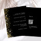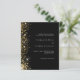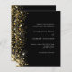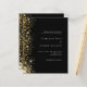 Eine moderne Einladung zur Hochzeit. Schwarzer Hintergrund mit Imitaten goldenen Glitzer Glitzern. Personalisieren und fügen Sie Ihre Namen und Hochzeitsdetails. Weiße Buchstaben. Zurück: Fügen Sie Ihren Link/URL zu Ihrer Hochzeitswebsite für Informationen und/oder UAWG. 1 Blatt = 1 Einladung gedruckt Rand zu Rand.