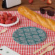 Quadrat Leaf Muster Aquamarin neutral Pappteller