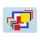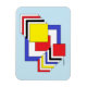 Dieses geometrische abstrakte Kunstwerk von Richard H. Fay zeigt eine Reihe von Quadraten in den Primärfarben Rot, Blau und Gelb sowie Schwarz und Weiß.