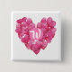 Quadratisches Abzeichen mit Rose in Monogramm. Eine zarte Herzform, die von kaskadierenden rosa Rosenblüten geschaffen wurde. Auf den personalisierten Versionen ist es so einfach, den Namen zu ändern! Achten Sie in meinem Zazzle-Shop auf weitere Liebhaber und Valentiner Rose.