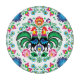 Dieses Volkskunst-Ausrüstungsbeschreibungen ein Paare Hähne auf ein helles Polnisch inspirierten Muster.