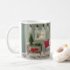 Unsere urige Weihnachtslandschaft Tasse lädt Sie ein in einen gemütlichen Raum am Zuhause, wo Sie moderne Dekoration mit einem leichten altmodischen Ambiente entdecken können. In dieser Zuhause ist Weihnachtsdekoration ein Muss! Mistletoe Träume und Poinsettias gibt es hier, diese Tasse strahlt vor festlicher Freude und üppigem Charme. Spaß: Das Quadratwurfkissen in dieser Szene steht in unserer "Cheerful Regal Floral Red, Green, Ivory Collection" zum Kauf zur Verfügung. Bundle das Kissen und die Tasse für ein festliches Weihnachtsgeschenk!