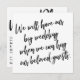 La distinction de cette suite est due à la police de script manuscrite décontractée et audacieuse utilisée pour les phrases d'accent. Si vous êtes en position de devoir informer vos invités mariages que vous avez dû changer de date importante, voici une option audacieuse. Dans cet article, la police de caractères manuscrite a été utilisée pour créer des graphiques typographiques simples. Sur le devant se trouve "Nous aurons notre grand mariage quand nous pourrons embrasser nos invités bien-aimés" et sur le dos, "Nouveau Plan". Utilisez les champs modèles pour ajouter vos détails personnels et faire de ce design moderne votre propre. L'arrière - plan peut être changé en n'importe quelle couleur. Veuillez communiquer avec toute demande spéciale ou customiser de l'aide. // 105 //