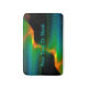 Ein blaues, grünes und orangefarbenes Fraktal mit Sternen. Fügen Sie Ihren eigenen Text hinzu.