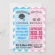 Rosa und blauer Zickzack Muster-Fußball-Quarterback gegen Cheerleader-Geschlecht decken Baby-Duscheneinladung auf. Vervollkommnen Sie für die Sportpaare, um anzukündigen, wenn sie einen Jungen oder ein Mädchen haben!