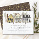 Annoncez votre nouvelle adresse avec notre aquarelle mignonne maisons de village avec illustration avec arbres. Retournez notre faire-part mobile pour voir un retour de coordination pour une touche spéciale supplémentaire.