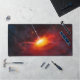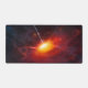 Le concept de quasars de l'artiste. Les quasars sont des régions lumineuses et dynamiques autour de trous noirs géants et actifs dans les centres galactiques. Bien qu'immensément puissants et visibles sur des milliards d'années-lumière, les quasars sont en fait assez minuscules, du moins comparé à toute une galaxie. Les quasars s'étendent sur quelques années-lumière, et leurs zones intérieures rejetant des vents à haute vitesse ne se comparent en gros que par la taille de notre système solaire. Il faut un faisceau de lumière environ dix heures pour traverser cette distance. Rendu par l'artiste de l'ULAS J1120+0641, un quasar très lointain alimenté par un trou noir avec une masse deux milliards de fois celle du Soleil.