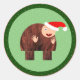 Ein bezauberndes Weihnachtssticker-Design, das eine Touch literarischer Launen zu Ihrem saisonalen Holiday Gruß hinzufügt. Diese Aufkleber zeichnen sich durch ein Design von Quasimodo, The Hunchback of Notre Dame, aus. Sie tragen eine niedliche kleine Weihnachtsmannmütze auf grünem Hintergrund mit einer leuchtend roten, von pixeligen Schneeflocken umrahmten, um einen hässlichen Weihnachtspullover-Look zu erhalten.