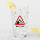 Warnschild am Ufer des Quayside oder Flusses. Das Verkehrsschild warnt die Autofahrer, über die Mauer zu fahren, um ins Wasser zu tauchen. Eigener Text.