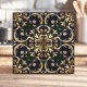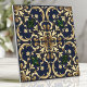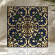 Queen Esther Damask Scroll Navy Blue Gold Fliese