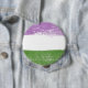 Im Nachhinein würde ich eher den Button mit Magnet bestellen... damit dieser bei jeder Kleidung angebracht werden kann. Sehr gute Bildqualität