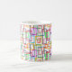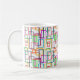 Diese Tasse hat ein Bauhaus-Design aus überlappenden Rechtecken in verschiedenen Farben.