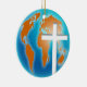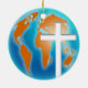 Illustration einer bunten Kugel der ganzen Welt mit einem Quersymbol schnitt von ihr heraus. Christlicher Konzeptentwurf. Leicht fertigen Sie besonders an und wählen Sie Ihre eigene Hintergrundfarbe. Bild verfügbar auf verschiedenen Geschenken und Produkten.