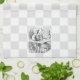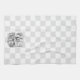 Serviette de cuisine de 16" x 24" avec une image vintage "Alice au pays des merveilles" d'Alice et de la Caterpillar qui est assise sur un champignon fumant sa pipe à narguilé tandis qu'Alice se tient sur ses doigts pour le voir. arrière - plan en damier gris et blanc. Voir la serviette en papier, le set de table en tissu, le set de table en papier et les dessous de verre assortis. Voir toute la collection Wonderland Kitchen Towel dans le document FOOD/BEV| Section Linens.