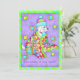 "I’m Cosy in my Quilt" Einladung, Ihre Liebe von Stechmücken und Hunden zu zeigen. Verwenden Sie für ein Party- oder Quilting-Ereignis. Die Kartenrückseite mit den Veranstaltungsdetails kann für Ihre Veranstaltung völlig personalisiert sein. Dieser weiße Hund ist in einen mehrfarbigen Patchwork-Steppdecke eingewickelt, um warm behalten. Er trägt einen gestreiften Schlitten. Der Hintergrund ist ein türkisfarbener Rahmen lila. Quilt Sterne sind am unteren Rand. Dieser Hund wird dich mit seinem bezaubernden Ausdruck überzeugen.