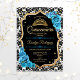 Gold schwarz blaue Quinceanera Feier Einladung. Enthält Damask-Muster, Script-Schriftart, aqua-blaue Rose, Tiara und Konfetti. Das elegante türkisblaue Design mit den Imitaten Glitzer Gold. Ideal für eine elegante Glamour.