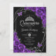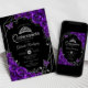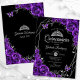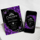 Lila, schwarze und silberne Quinceanera-Feier Einladung. Features, Script-Schriftart, Silberschmetterlinge, Aquarellfarben Rose und Tiara. Ideal für eine elegante Glasfeier im Prinzessinnstil. Personalisieren Sie Ihre persönlichen Daten. Gedruckte Zazzle-Einladungen oder Sofortdownload digitaler Druckvorlage.