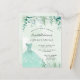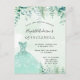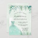 Une invitation branchée pour une Quinceañera, fête du 15ème anniversaire, enchantée thème de la forêt. Un arrière - plan vert à l'eau avec des fougères et de la verdure d'eucalyptus, une robe verte. Le nom est écrit avec un script de style moderne écrit à la main. Personnalisez et ajoutez les détails de votre fête. Conseil : Si vous ne voulez pas qu'il ressemble à une carte postale, cliquez sur customiser, allez à l'arrière et retirez le séparateur et le timbre postal.