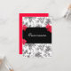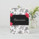 Arrière - plan damassé noir et blanc avec de belles roses rouges. Bannière noire pour ajouter le texte souhaité. Customisez le texte à vos besoins. Changez pour Sweet sixteen, Bat mitzvah ou Quinceanera.