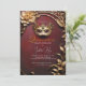 Lassen Sie Ihre Quinceañera mit dieser eleganten maskerade-thematischen Einladung wirklich verzaubern. Das Design zeigt eine luxuriöse Rot- und Goldpalette, die an einen magischen Maskenball erinnert. Das goldene Blattwerk der 3D-Imitate verleiht Ihrem Fest eine Touch Glamour.