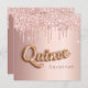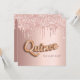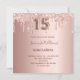 Für eine luxuriöse Quinceañera, 15. Geburtstagsparty. Eine Rose goldener Hintergrund mit Rose Gold und rosa Tropfen, Farbe Tropflook. Der Text: Stille wird mit einem Schriftart im Ballonstil geschrieben. Personalisieren und Hinzufügen eines Namens und Party