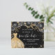 Eine gmädchenhafte und trendige Save the Date-Karte für eine Quinceañera, 15. Geburtstagsfeier. Schwarzer Hintergrund mit schwarzen Rose, vergoldeten Glitzer-Imitaten und goldenem Kleid. Personalisieren und fügen Sie Datum und Name/Alter hinzu. Der Text: Save the Date ist mit einem großen angesagten, handgeschriebenen Stilskript geschrieben.