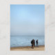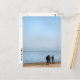 Diese Postkarte zeigt einen kalten, hellen Tag im November. Das Wasser ist schön blau. Der Himmel ist pastellfarben getönt. Drei Figuren gehen entlang der Küste von Quincy Bay südlich von Boston, MA.