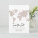 Diese Reise-Thema Save the Date Postkarte bietet eine blütige Weltkarte und optional Foto-Rückseite. Verändern Sie die Farben einfach und bewegen Sie das Herz, um Ihr Ziel zu markieren. Bearbeiten Sie *most* nach Ihren Bedürfnissen.