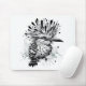 Ein sehr detailliertes Schwarz-Weiß-zeichn eines Vogels mit einem aufwändigen und spitzen Wappen von Federn