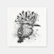 Ein sehr detailliertes Schwarz-Weiß-zeichn eines Vogels mit einem aufwändigen und spitzen Wappen von Federn