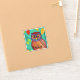Personalisierte niedliche Rot-, Blau-, lila- und Braunkaukauz-Eule und Blätter volkstümliche KI-Kunst.