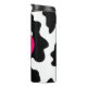 Quirky cool black and white cow spots pattern with bold hot pink monogram.