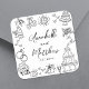 Personalisierte, von Hand Gezeichnet Quirky-Hochzeitskleber. Diese lustigen und spielerischen Hochzeitsaufkleber sind mit eigenartigen Doodle-Illustrationen rund um das Design ausgestattet, darunter ein Champagnerturm, Hochzeitskuchen, Diskokugel, Herzen, Hochzeitsglocken, Ringe, Kameras und vieles mehr. Die Braut- und Bräutigam-Namen und das Hochzeitsdatum werden unter diesem skurrilen Kunstwerk elegant in einem Mix aus handgeschriebenen Schriften und einfachen Schriftart dargestellt, die ein einzigartiges und dennoch stilvolles Aussehen verleihen. Dieses Design ist vollständig anpassbar und erlaubt es Ihnen, den Text und das Layout an Ihr Hochzeitstil anzupassen. Diese Aufkleber sind ideal zum Abdichten von Umschlägen, Dekorieren von Gefälligkeiten oder zum Hinzufügen einer persönlichen Touch zu Ihrem Hochzeitsgeschenk.