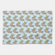 Farbige Wiederholdoodle-Muster einer Henne auf hellblauem Hintergrund.