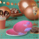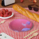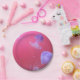 Kunstfoto lila Quallen, die in leuchtend rosa Wasser schwimmen.