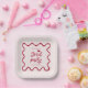Eine wunderschöne und lustige Graduiertenplatte mit handgezeichneter Wellenlinie als Rahmen. Der Hintergrund ist rot.