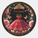 Quniceanera Fvor Bag Rote Rosen Blumendanke Runder Aufkleber