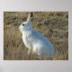 Schneeschuhposter. Manchmal werden sogar Mutter-Natur-Pläne durch das Wetter verführt, dieser Schneeschuhhase hat sich in seinen weißen Wintermantel verwandelt, aber die Winterschnees sind spät, und anstatt getarnt zu werden, sticht er jetzt gegen die braunen Präriegras hervor.