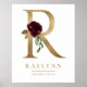 R Letter Monogram Name Marsala Floral Kinderzimmer Poster