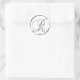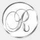 R Monogramm Imitate Silberumschlag oder Gutes Siegel. Diese klassischen Rundaufkleber sind mit nichtmetallischer Tinte auf einem flachen Aufkleber bedruckt, um silber auszusehen. Sie sind nicht geschrägt oder geprägt, sondern so gestaltet, als wären sie geschrägt oder geprägt. Diese silbernen Monogramm-Siegel werden auf weißem Hintergrund gedruckt, es sei denn, Sie wählen einen anderen Farbhintergrund, bevor Sie zur Kasse gehen. Neben den hübschen Vorräten an Hochzeitsmaterial machen diese eleganten Hochzeitsaufforderungsaufkleber auch mit Monogramm Weihnachtskarten-Siegel, personalisierte Weihnachtskarten-Umschlag Aufkleber-Aufkleber und kundenspezifische Xmas-Card-Monogramm-Siegel-Aufkleber.