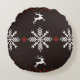 Gemütlich für den Urlaub mit diesem charmanten Rundkissen! Mit einem klassischen Fair Isle oder Weihnachten Pullover-Muster präsentiert das Design Reihen springender Rentiere und großer Schneeflocken in einer sauberen, festlichen Farbkombination aus dunkler Kohle/Schwarz, knusprigen Weiß und kühlen roten Akzenten.